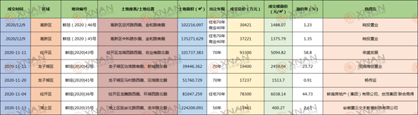 2020年第四季度安徽蚌埠土地成交信息汇总