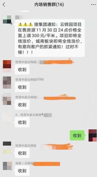 世茂中梁云锦园发布了涨价通知,在售房源计划于11月30日24点价格全面上调300元/平。项目即将全线涨价,城南板块即将全线涨价。