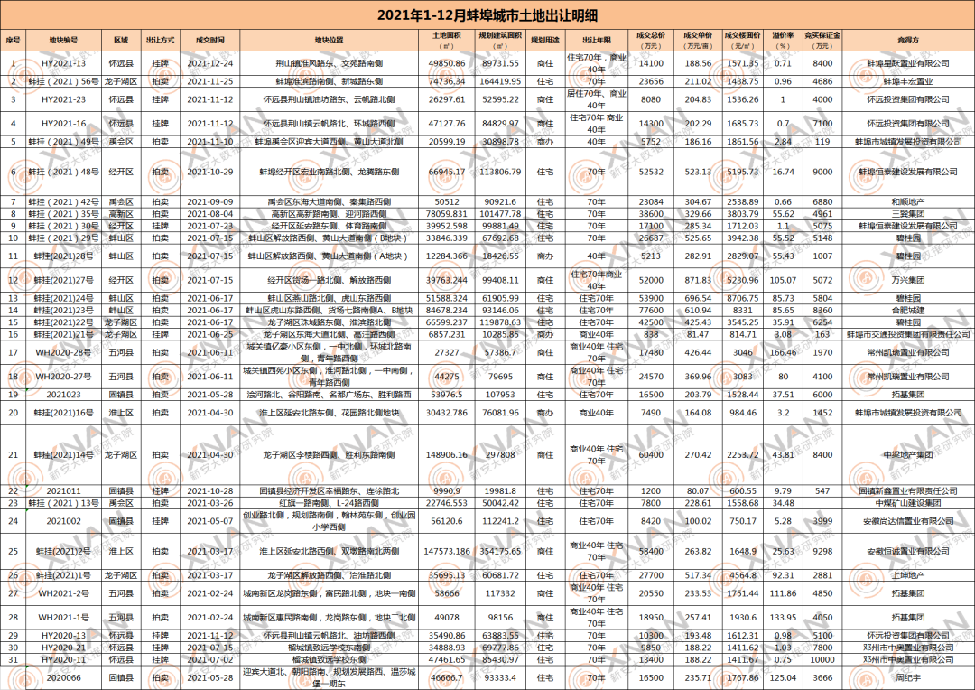总揽金7755亿元!2021年蚌埠32宗土地成交约2398亩-手机新安房产网