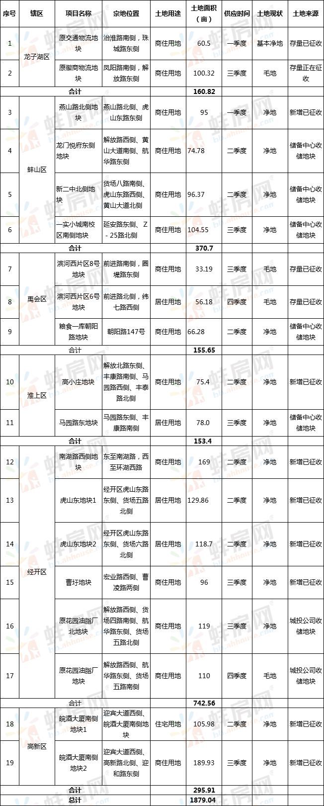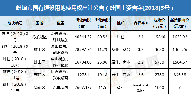 1879亩!2018蚌埠市区土地供应计划出炉4月五宗12805亩核心区地块“待嫁”起始总价近3亿