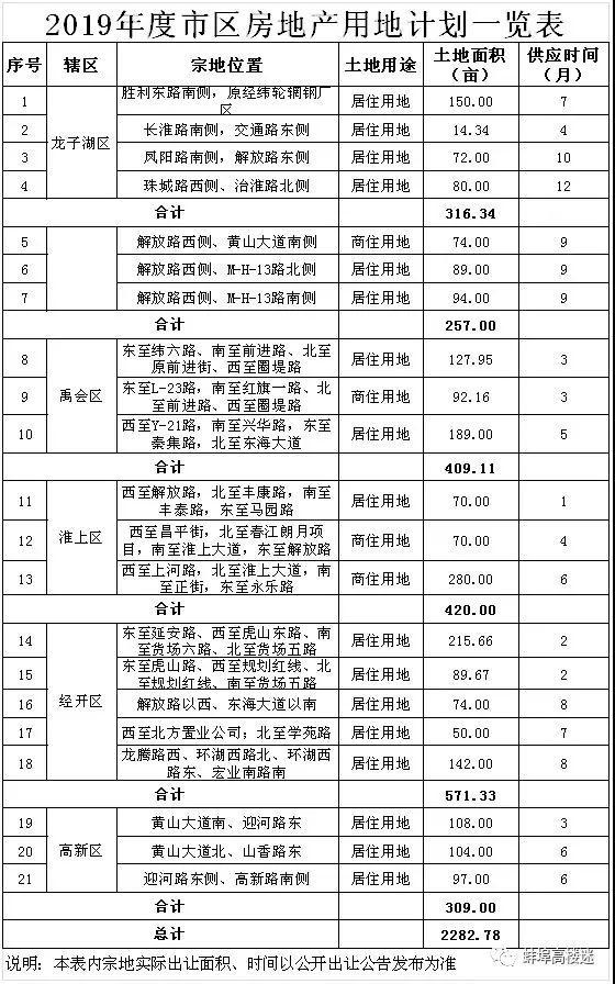 蚌埠2019年度市区房地产供地计划出炉(附宗地坐落图地块解析)