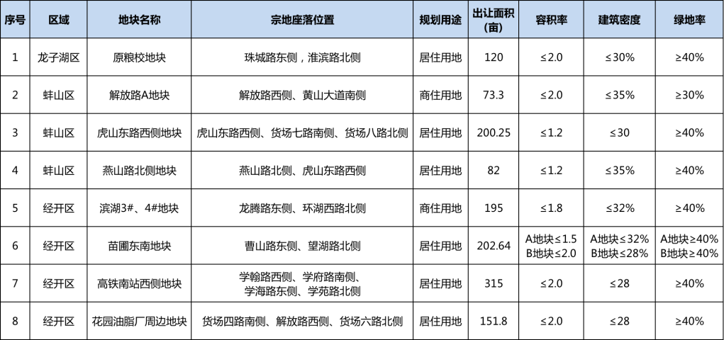 蚌埠市2021年上半年拟出让的8宗优质地块 总面积1340亩!