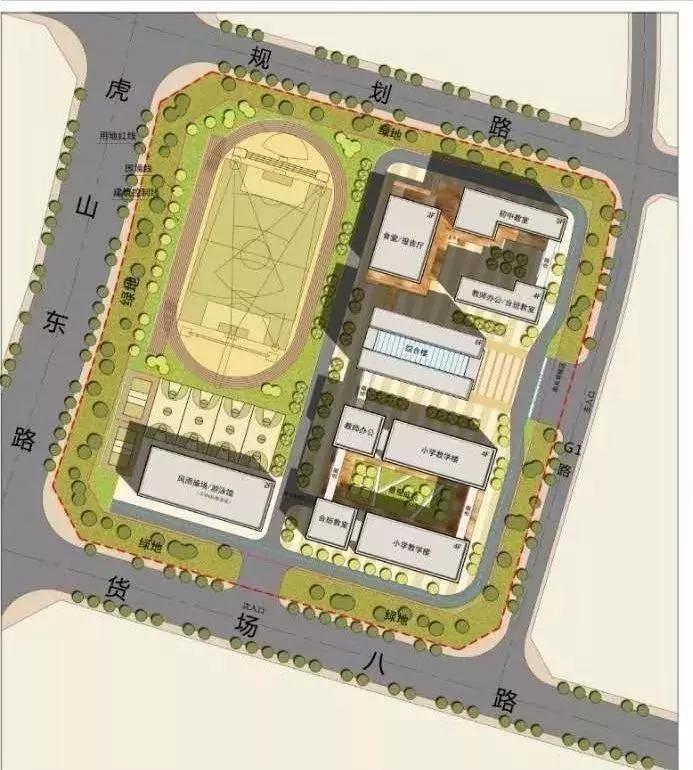 ,建筑面积约58000平方米,包含建造教室、功能室、学生宿舍、食堂、游泳馆等,建成一所包含54个班级的九年一贯制学校。