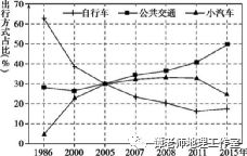 “绿色出行”新理念已为我国许多城市市民所接受。下图为“1986—2015年某城市市民主要出行方式变化图”。读图回答下面两题。