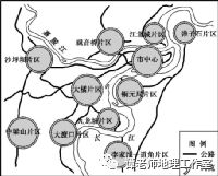 下图为我国某特大城市20世纪60年代城市用地形态示意图。据此完成下面两题。