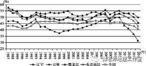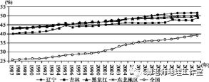 (2)东北地区工业化起步早,改革开放以前及改革开放初期,工业化水平高于我国大部分省区,比国内其他地区更早开始吸引大量农村人口从事非农业生产;(2分)农业广泛采用规模化、机械化生产,对劳动力的需求较少,有利于农村人口向城市迁移。(2分)(其他答案合理可酌情给分)